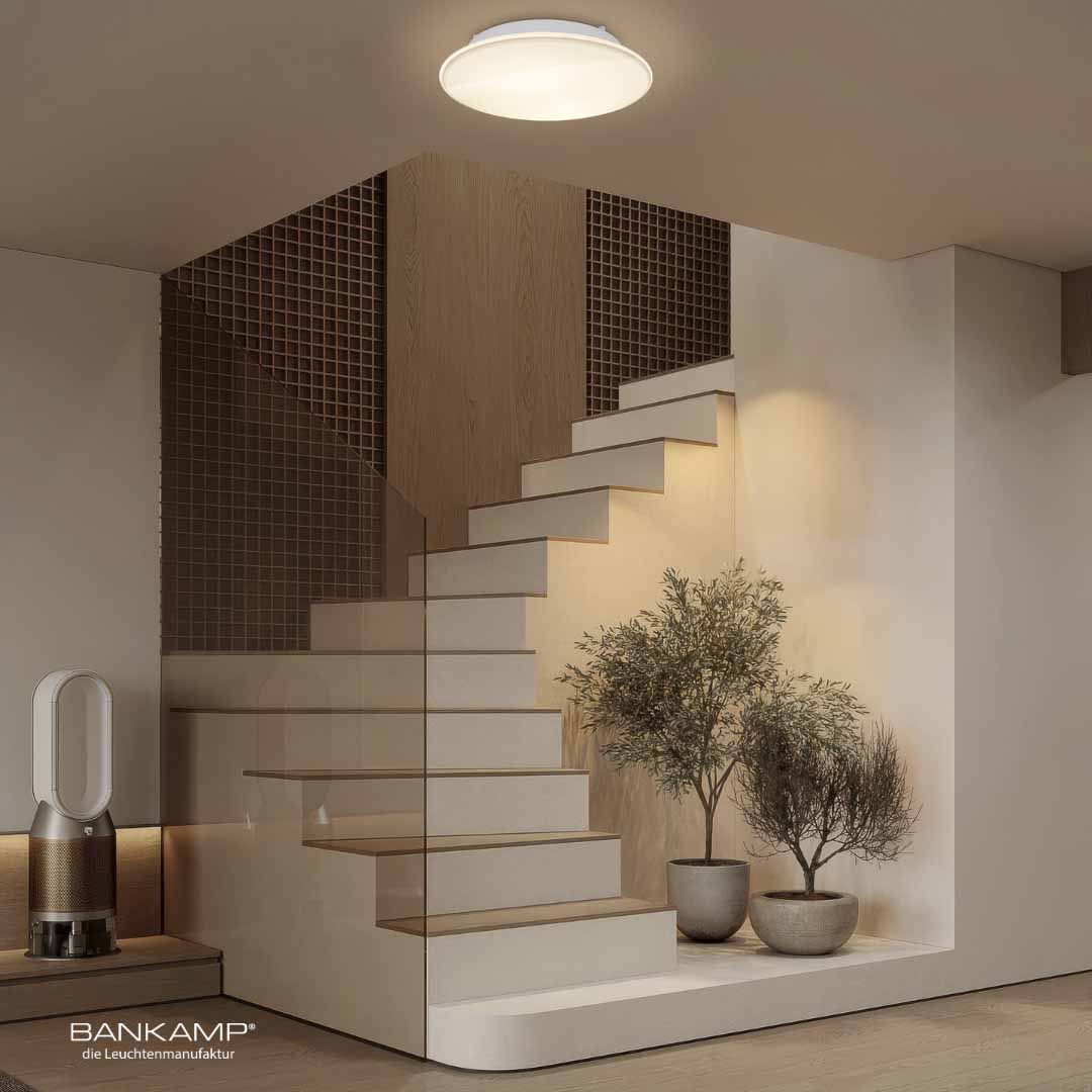 Die Basic Deckenleuchte überzeugt durch schlichte Eleganz und Funktionalität. Mit ihrem zeitlosen opalweißen Glas sorgt sie für eine gleichmäßige und blendfreie Beleuchtung. Erhältlich in drei Größen, bietet sie Optionen für jeden Raum, von kleineren Räumen bis hin zu großen Wohn- oder Arbeitsbereichen. Die Basic Serie ist zudem spritzwassergeschützt (IP44) und eignet sich daher auch für Badezimmer. In Kombination mit weiteren Produkten der Serie entsteht ein einheitliches und stilvolles Beleuchtungskonzept.