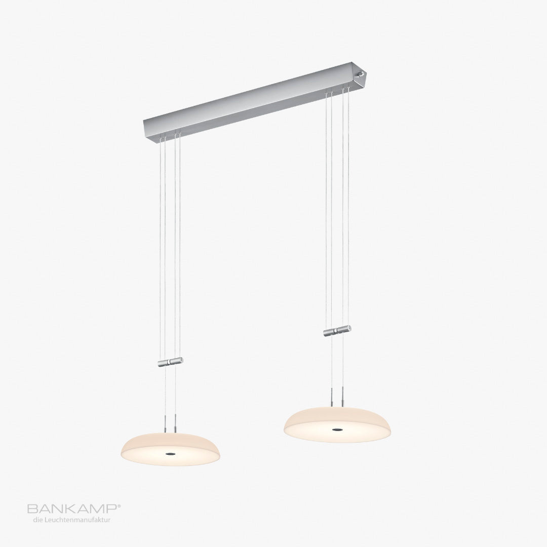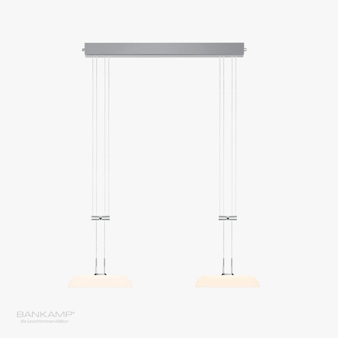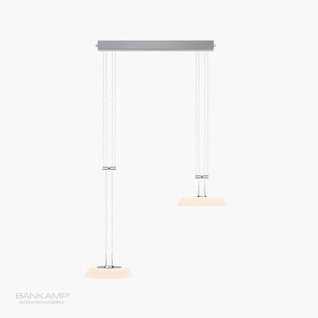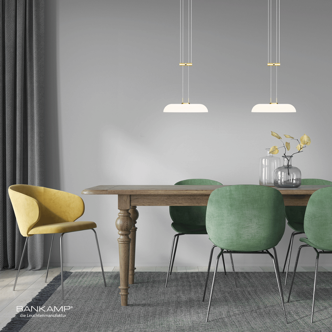 Die Bowl Pendelleuchte gibt es als 1er, 2er oder 3er Pendel. Sie überzeugt durch ihr einzigartiges Design und die gleichmäßige Lichtverteilung. Mit einer Leistung von 19/38/57 W und einer Lichtstärke von 1700/3400/5100 Lumen sorgt sie für eine angenehme Beleuchtung, die sich flexibel anpassen lässt. Das weiße Glas sorgt für weiches, diffuses Licht, das die Atmosphäre in jedem Raum optimiert. Erhältlich in verschiedenen Farben und Längen, passt die Bowl Pendelleuchte perfekt in moderne Ess- oder Wohnzimmer.