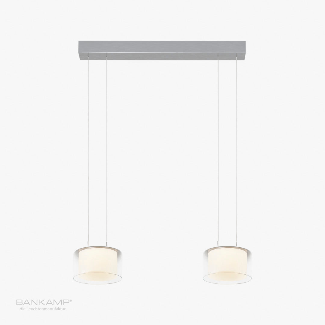 Die 2er-Pendelleuchte Grand sorgt mit ihren zwei Pendeln für eine beeindruckende Lichtgestaltung in großen Räumen oder über Esstischen. Mit einer Leistung von 38 W und einer Lichtstärke von 3400 Lumen bietet sie eine hervorragende Ausleuchtung und kann über die Vertical-Dim-Funktion an die gewünschte Raumstimmung angepasst werden. Die Leuchte ist in verschiedenen Varianten erhältlich und lässt sich perfekt mit weiteren Produkten der Grand Serie kombinieren, um eine durchgängige Lichtlösung zu schaffen. Optional können diese Leuchten auch über Dali oder Casambi gedimmt werden, dies ist als Sonderanfertigung möglich.