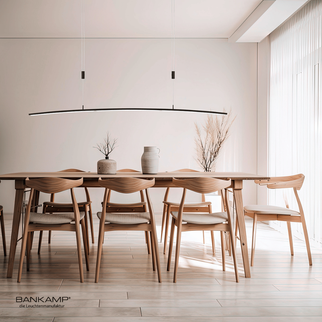 Die Pendelleuchte Plain setzt elegante Lichtakzente über Esstischen, Arbeitsplätzen oder in Wohnbereichen. Sie ist in zwei Längen erhältlich, 120cm und 131 cm, sowie in den Farben Bronze, Aluminium matt und Anthrazit matt. Die Leuchte bietet Tunable-White, sodass sich die Lichtfarbe stufenlos von warmem bis kühlem Weiß anpassen lässt, sowie die Vertical-Dim-Funktion und einen Sensor Dimmer für eine einfache, präzise Steuerung der Helligkeit. Der integrierte Höhenstopper erlaubt eine flexible Anpassung der Pendelhöhe.