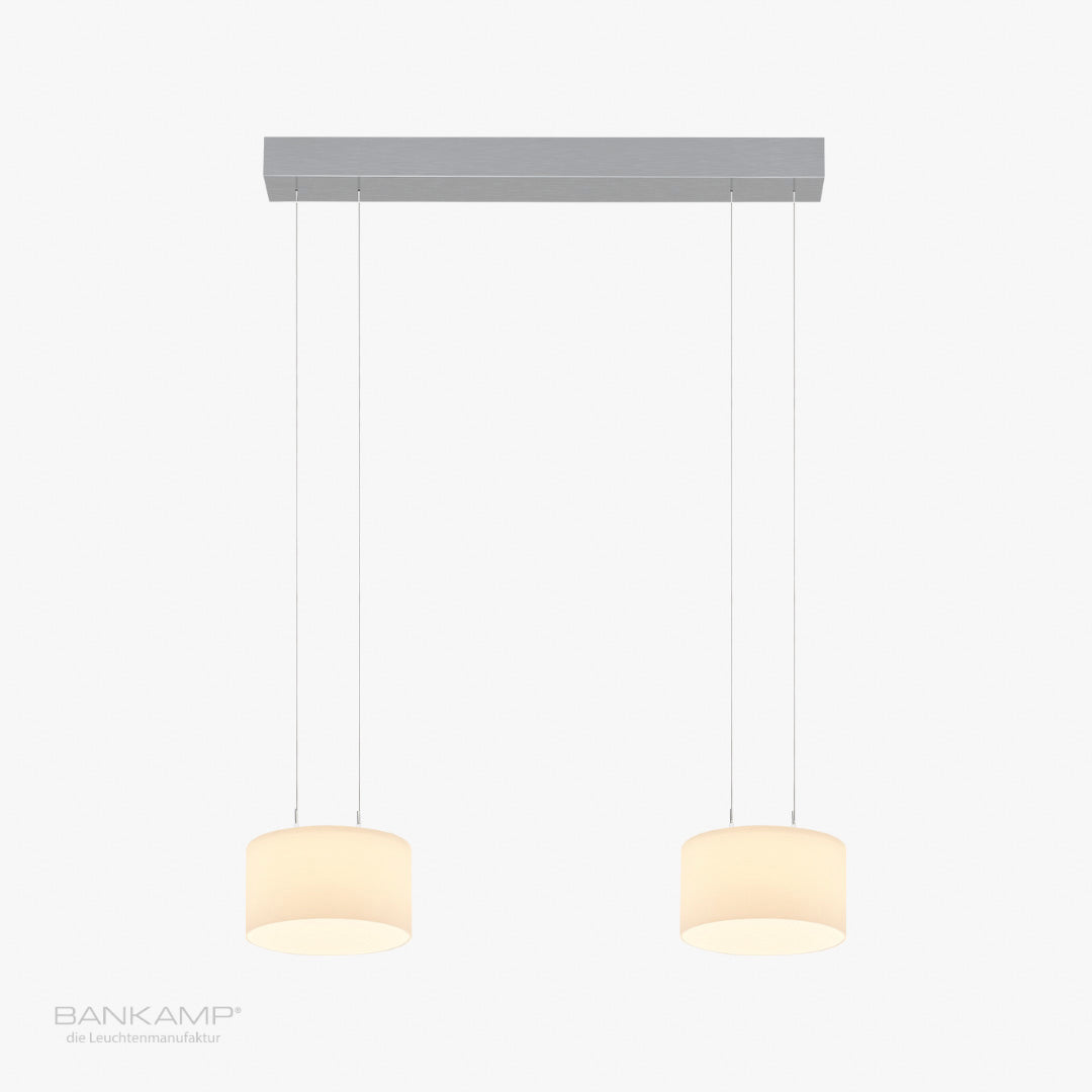 Die 2er-Pendelleuchte Grand sorgt mit ihren zwei Pendeln für eine beeindruckende Lichtgestaltung in großen Räumen oder über Esstischen. Mit einer Leistung von 38 W und einer Lichtstärke von 3400 Lumen bietet sie eine hervorragende Ausleuchtung und kann über die Vertical-Dim-Funktion an die gewünschte Raumstimmung angepasst werden. Die Leuchte ist in verschiedenen Varianten erhältlich und lässt sich perfekt mit weiteren Produkten der Grand Serie kombinieren, um eine durchgängige Lichtlösung zu schaffen. Optional können diese Leuchten auch über Dali oder Casambi gedimmt werden, dies ist als Sonderanfertigung möglich.