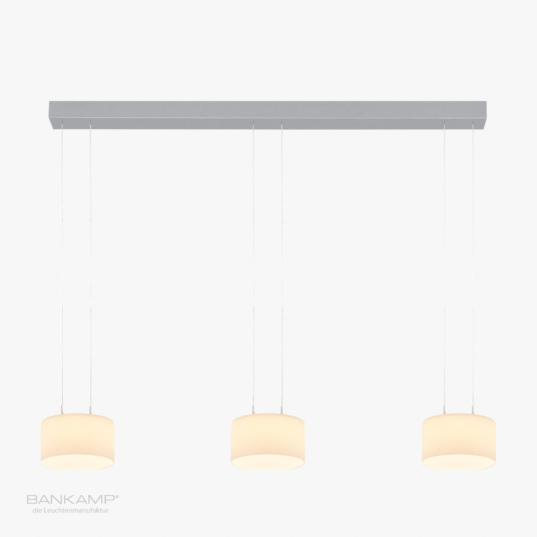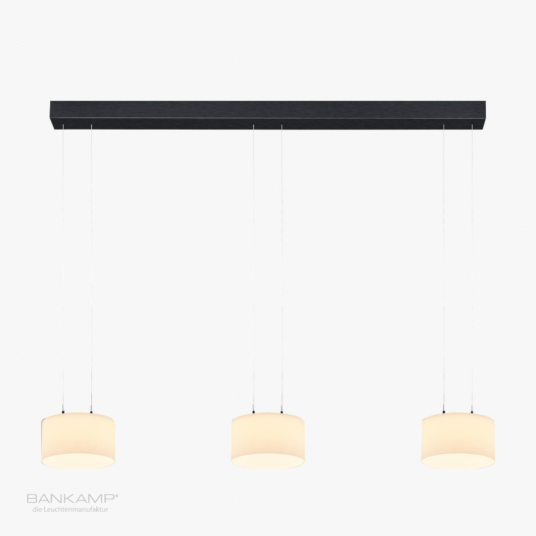 Die 3er-Pendelleuchte Grand sorgt mit ihren drei Pendeln für eine beeindruckende Lichtgestaltung in großen Räumen oder über Esstischen. Mit einer Leistung von 57 W und einer Lichtstärke von 5100 Lumen bietet sie eine hervorragende Ausleuchtung und kann über die Vertical-Dim-Funktion an die gewünschte Raumstimmung angepasst werden. Die Leuchte ist in verschiedenen Varianten erhältlich und lässt sich perfekt mit weiteren Produkten der Grand Serie kombinieren, um eine durchgängige Lichtlösung zu schaffen. Optional können diese Leuchten auch über Dali oder Casambi gedimmt werden, dies ist als Sonderanfertigung möglich.
