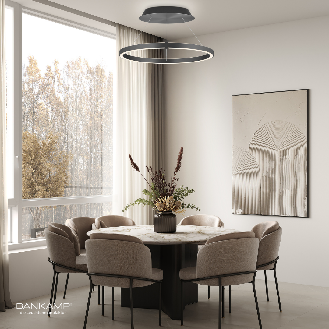 Die Deckenleuchte Line überzeugt durch moderne Technik und durchdachtes Design, das für eine perfekte Ausleuchtung sorgt. Sie verfügt über Dim-to-Warm-Technologie und eine getrennte Schaltbarkeit, sodass Helligkeit und Lichtfarbe stufenlos an Ihre Bedürfnisse angepasst werden können. Dank der Individual-Flex-Funktion ist die Leuchte auch für schräge Decken bis zu 30° geeignet. Sie ist über unsere B-Link Fernbedienung steuerbar und bietet mit einem CRI-Wert >95 besonders natürliche Farbwiedergabe, die Räume optimal zur Geltung bringt. Mit ihrem klaren, eleganten Design passt die Deckenleuchte in verschiedenste Einrichtungsstile und verbindet ästhetische Präzision mit maximaler Flexibilität. Optional auch über Dali oder Casambi dimmbar, dies ist als Sonderanfertigung möglich.