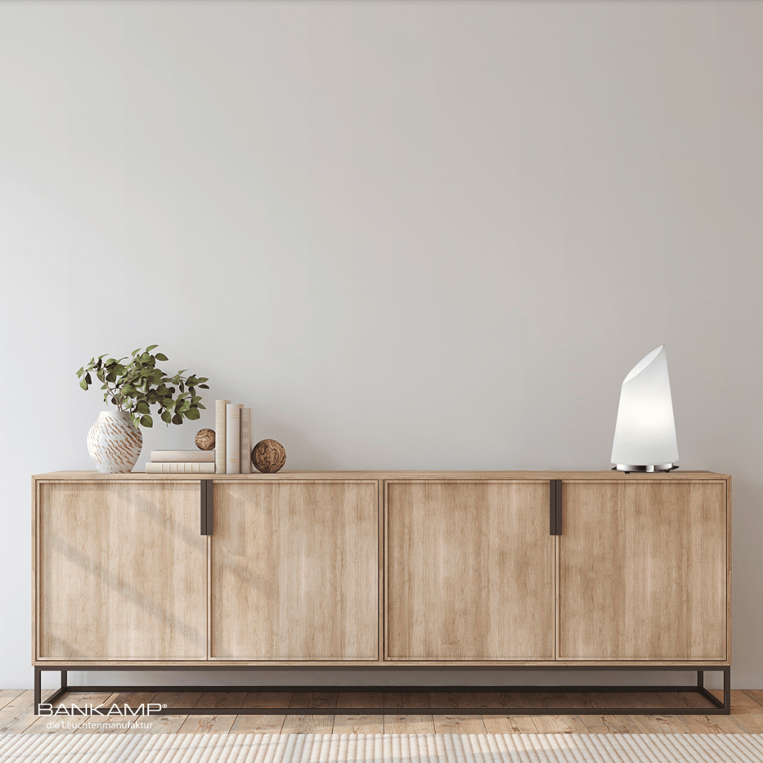 Die Tischleuchte Navigare/Sail bietet eine elegante und funktionale Beleuchtung für jeden Flur oder Wohnzimmer. Die Leuchte lässt sich einfach über einen Schnurschalter bedienen der sich an dem Textilkabel der leuchte befindet. Dank ihrer eleganten Form passt sie perfekt auf Tische und Regale.